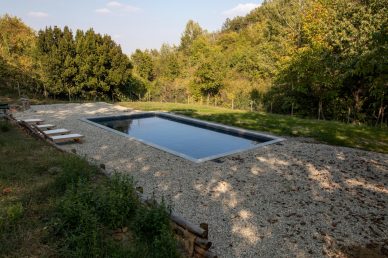 Una piscina interrata votata al relax ed allo svago: la spiaggetta interna di dimensione mt. 4×2 crea una zona dove potersi sdraiare immersi nell’acqua. La scala interna, integrata con la spiaggia, permette un comodo accesso alla zona principale della piscina a doppia profondità.