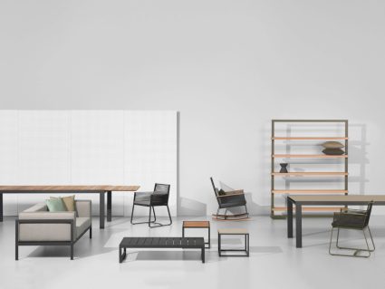 Il divano due posti XL Landscape di Kettal è caratterizzato da linee tese e moderne, coerenti con il materiale utilizzato per la realizzazione: alluminio verniciato a polveri di poliesteri.