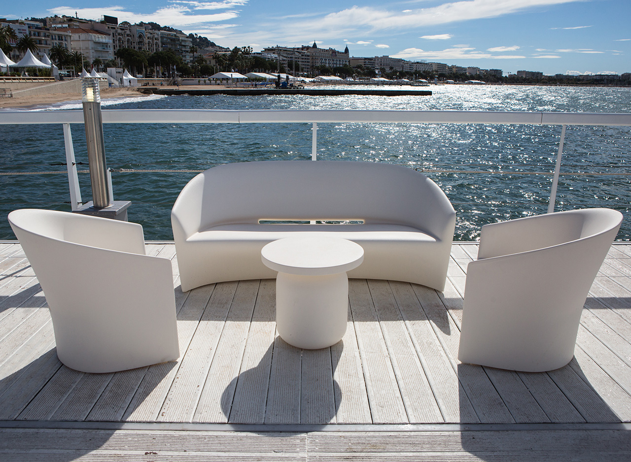 Divano outdoor Pine Beach di Serralunga realizzato in LLDPE (polietilene lineare a bassa densità) antimacchia Clean Fighter ottenuto mediante stampaggio rotazionale. Il divano Pine Beach è disponibile in diverse colorazioni oppure con finitura neutra ed illuminazione interna.