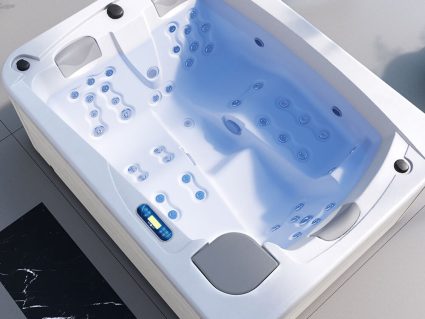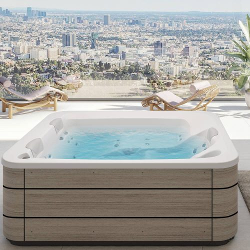 La compattezza delle dimensioni sono una caratteristica della vasca idromassaggio Ocean 70, che dispone di due comodi lettini.