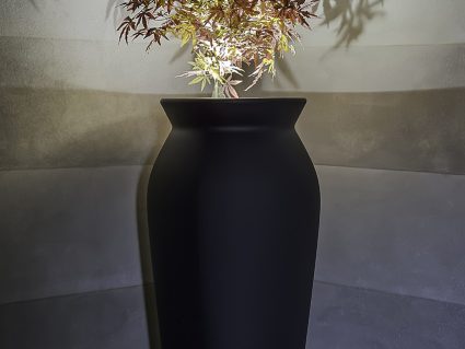 Vaso June realizzato in polietilene antimacchia Clean Fighter ottenuto tramite stampaggio rotazionale, con la sua forma classica che ricorda le antiche anfore di millenni fa.